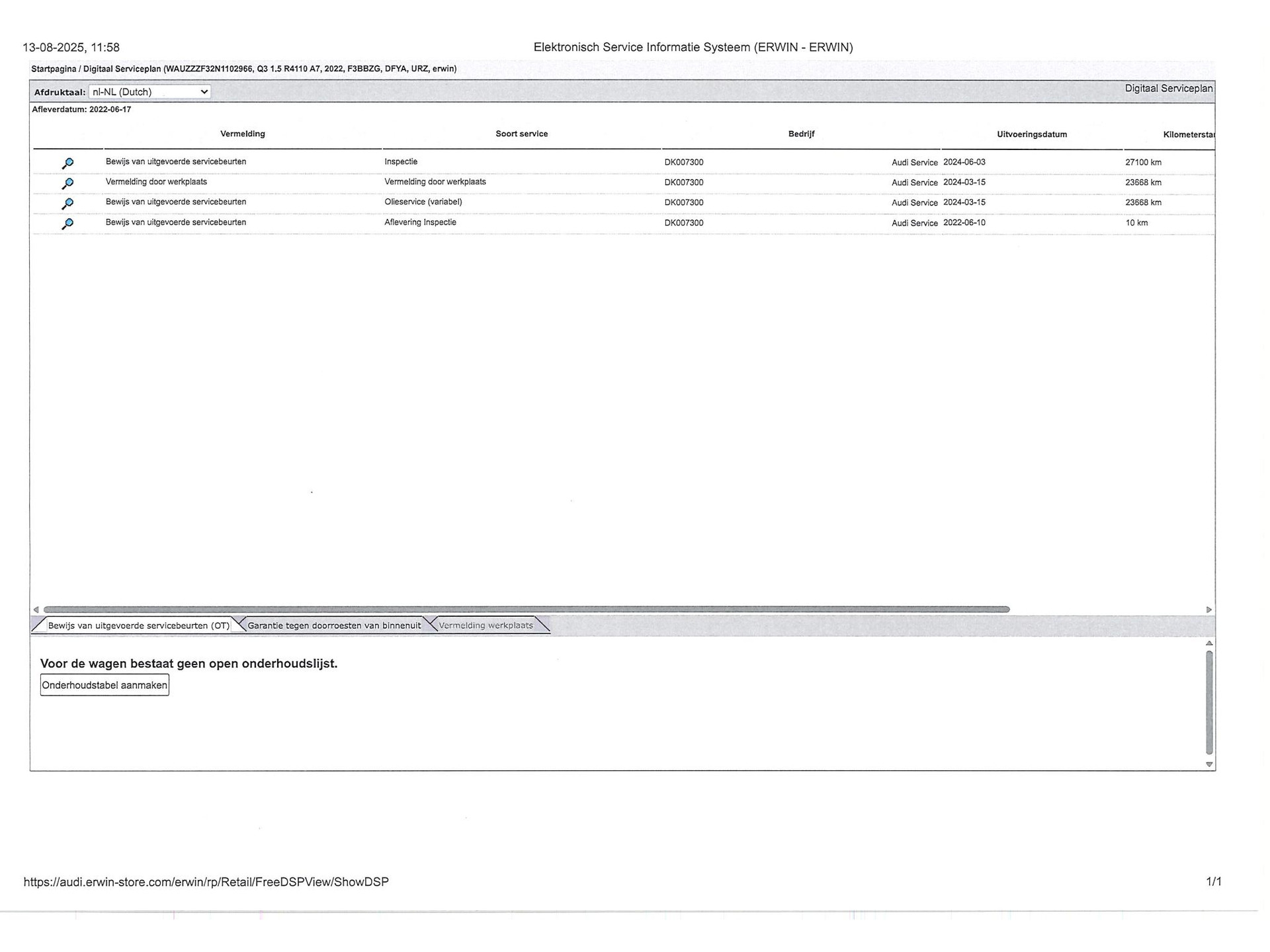 - Onderhoudsboekje aanwezig?