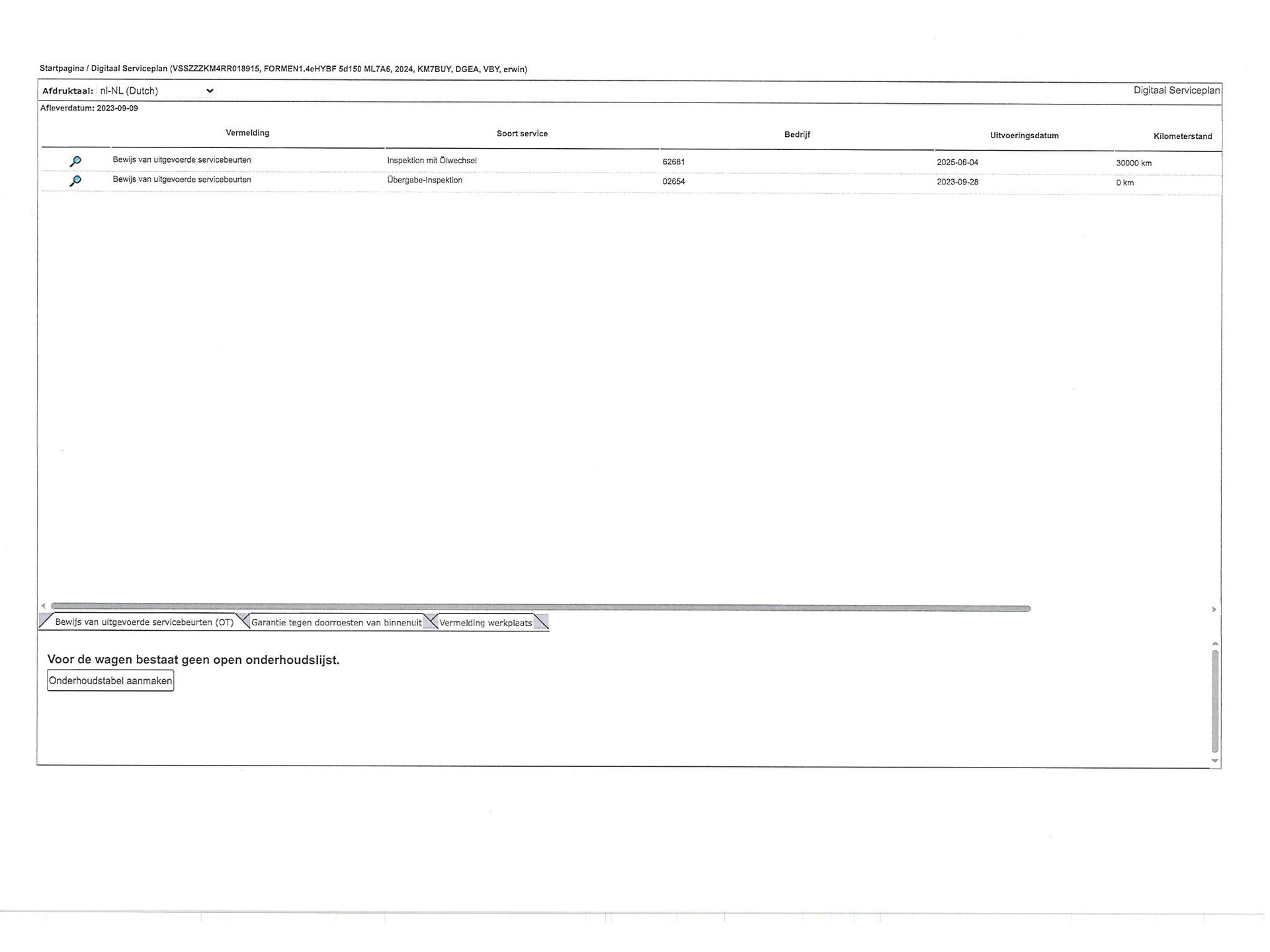 - Onderhoudsboekje aanwezig?