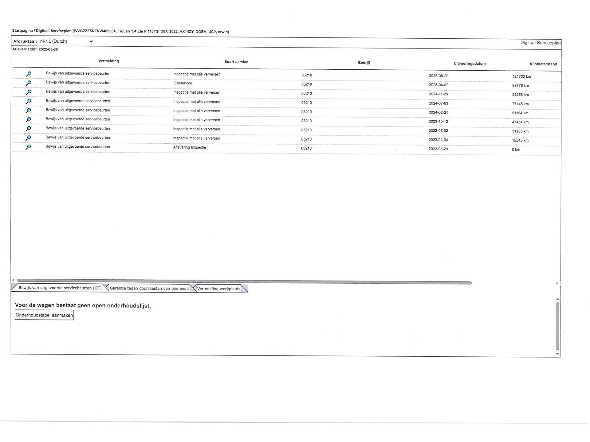 - Onderhoudsboekje aanwezig?
