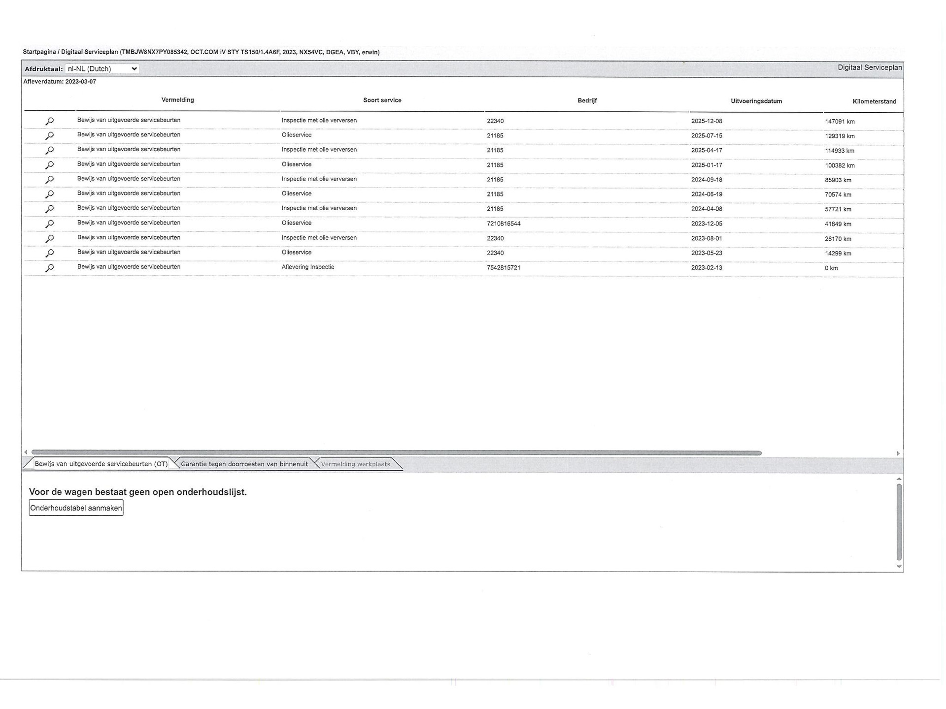 - Onderhoudsboekje aanwezig?