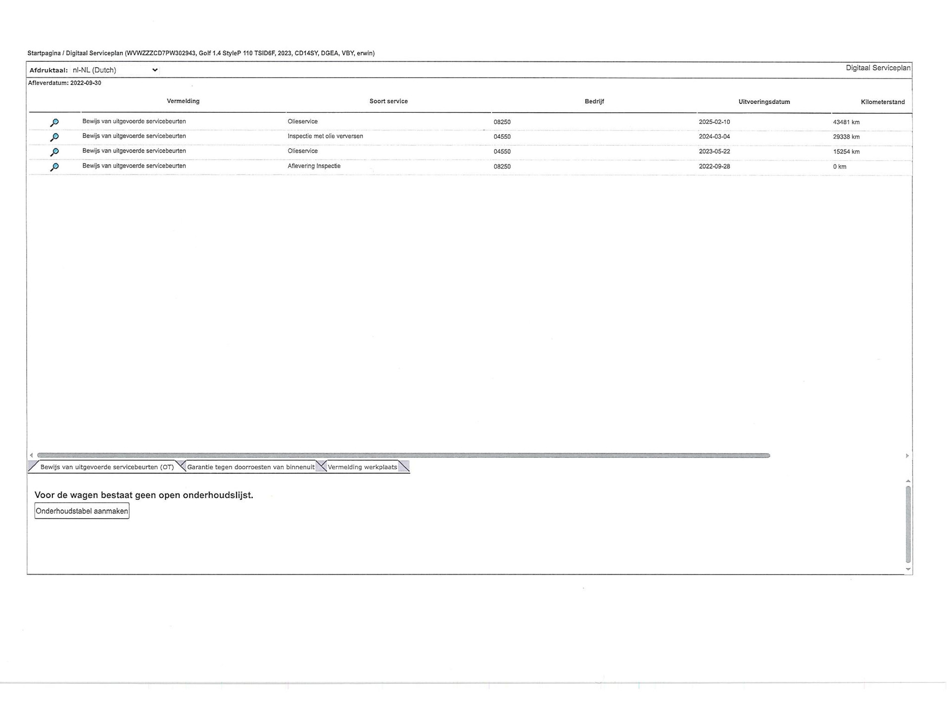 - Onderhoudsboekje aanwezig?