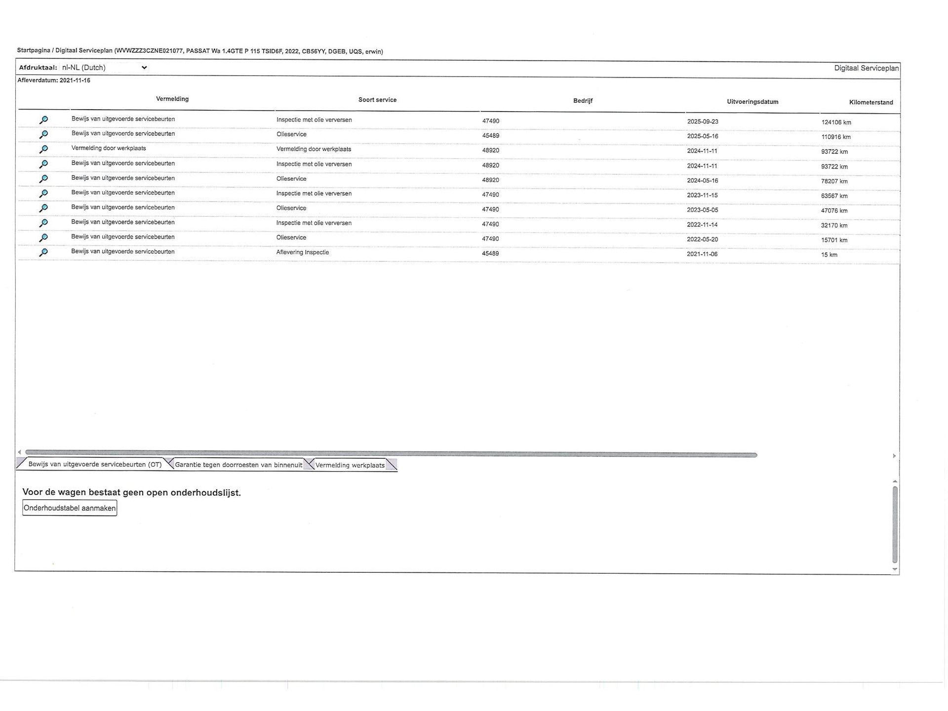 - Onderhoudsboekje aanwezig?