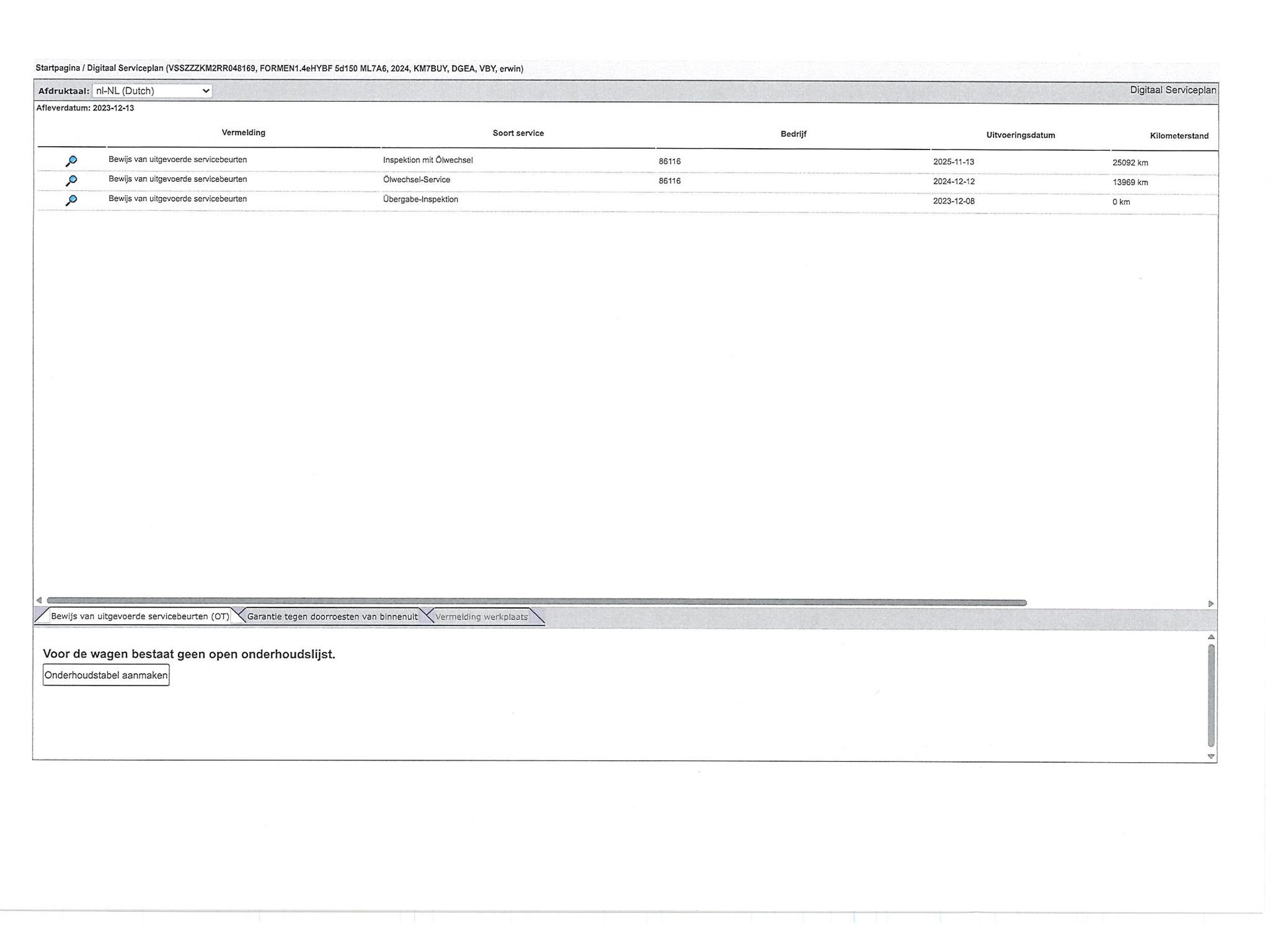 - Onderhoudsboekje aanwezig?