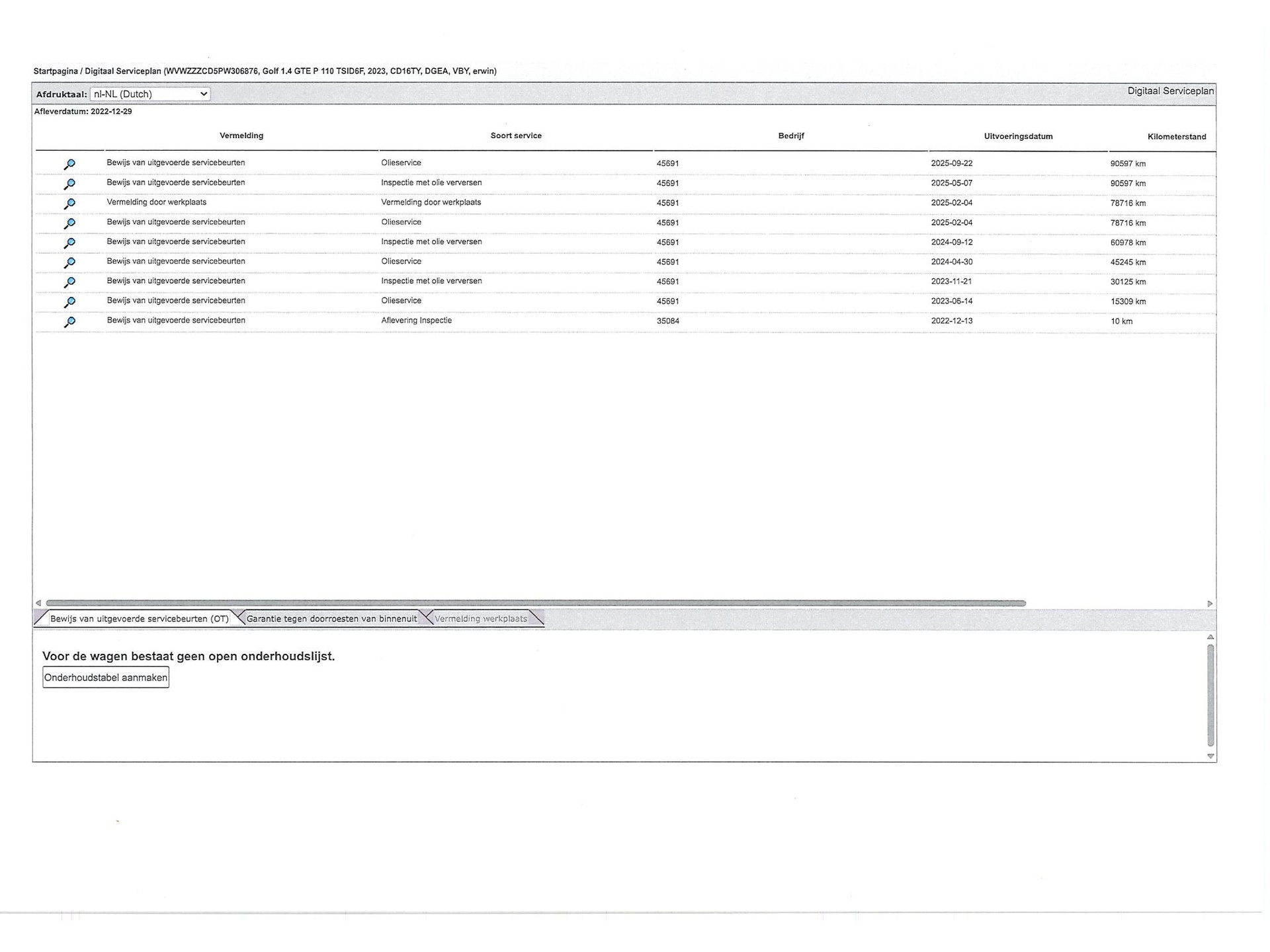 - Onderhoudsboekje aanwezig?